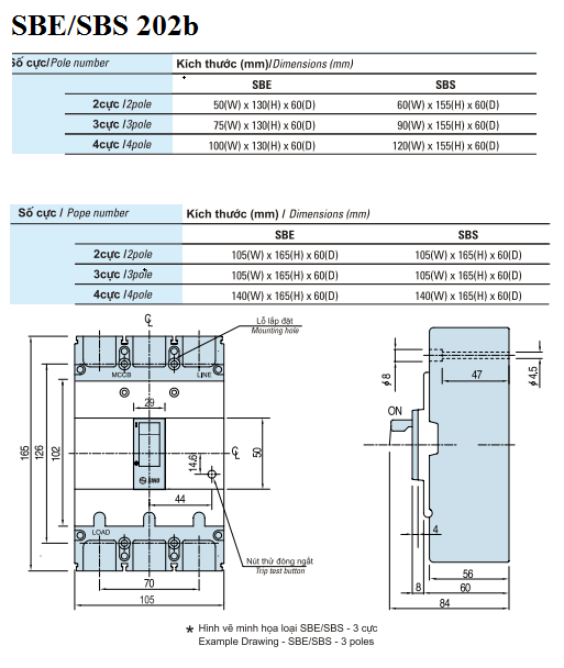 MCCB 3P 250A SBS203c/250 42kA được sử dụng trong các hệ thống điện 3 pha công suất lớn và đòi hỏi độ an toàn cao: