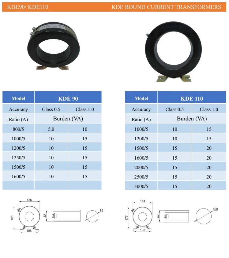 Thông số biến dòng tròn đo lường tròn KDE90 800/5A