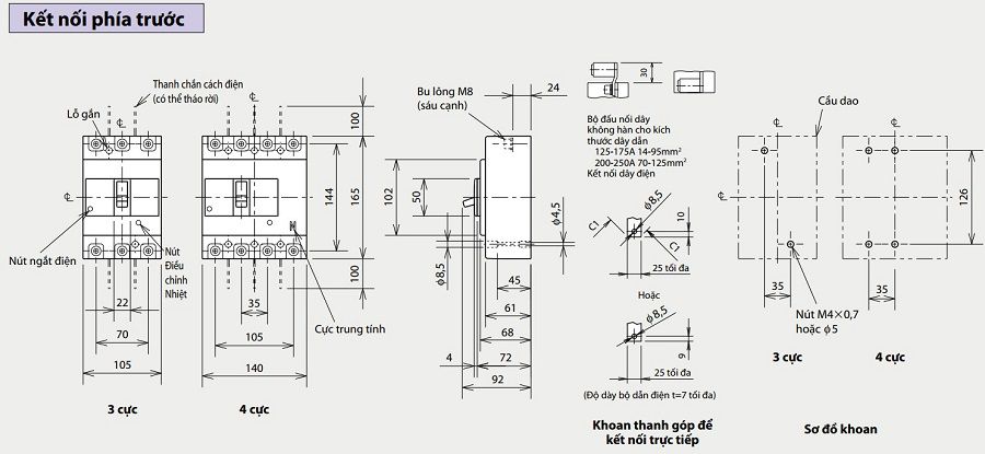 THÔNG SỐ KỸ THUẬT Aptomat MCCB NF125-HGV 4P 20-25A 75KA Mitsubishi Mitsubishi NF125-HGV 4P 20-25A 75KA