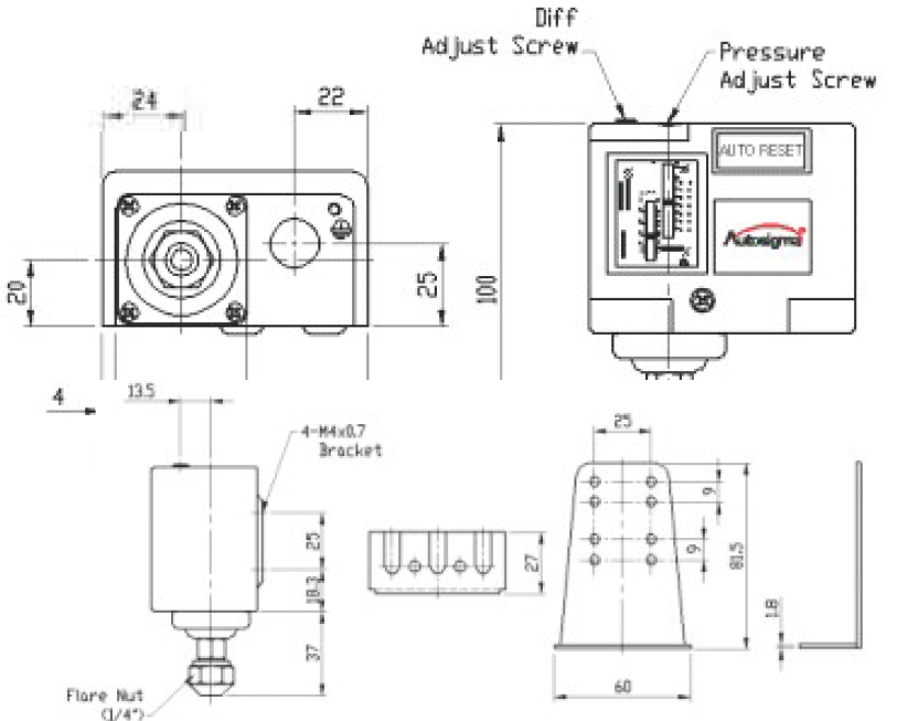 -Là loại công tắc áp suất đơn, tự động reset, phổ thông, thông dụng trên thị trường.