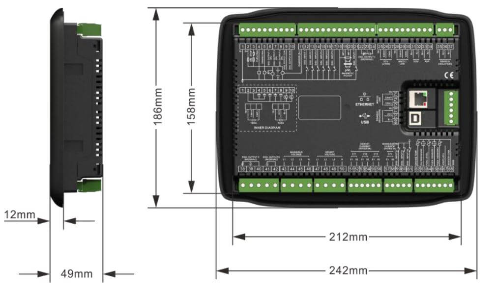 Giao diện: 2 cổng RS485 (MODBUS), 1 cổng CANBUS (J1939).