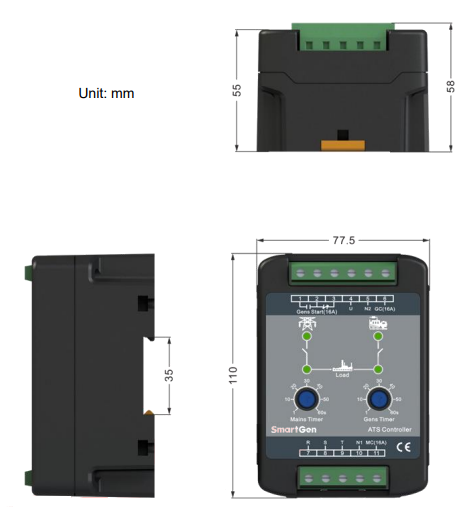 THÔNG SỐ KỸ THUẬT Bộ điều khiển ATS HAT310 dạng nhỏ gọn gắn Dinrail SMARTGEN HAT310