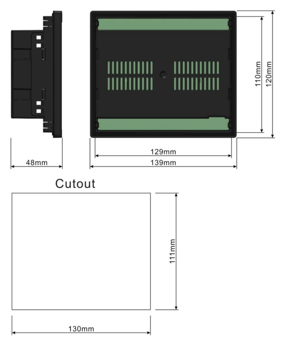 Kích thước khoét tủ: 130x111mm 130mmx111mm