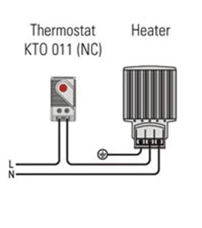 Điều khiển bộ gia nhiệt (heater): Mặc dù KTS011-NC là NC và thường dùng để điều khiển quạt, nhưng nếu muốn điều khiển bộ gia nhiệt (ví dụ để chống ngưng tụ trong tủ điện vào mùa đông), người ta sẽ dùng một rơle trung gian. KTS011-NC sẽ điều khiển cuộn dây rơle, và tiếp điểm của rơle sẽ điều khiển bộ gia nhiệt theo logic mong muốn (ví dụ: bật gia nhiệt khi nhiệt độ xuống thấp). Tuy nhiên, đối với ứng dụng gia nhiệt, người ta thường dùng KTO011 (loại NO - Normally Open) hơn.