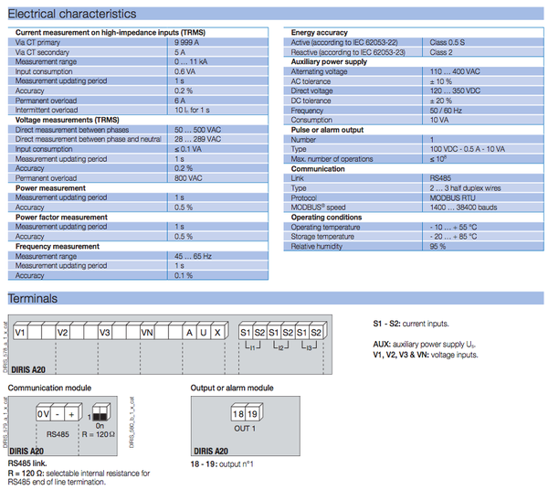 THÔNG SỐ KỸ THUẬT Đồng hồ đo đa năng DIRIS A30 SOCOMEC DIRIS A30
