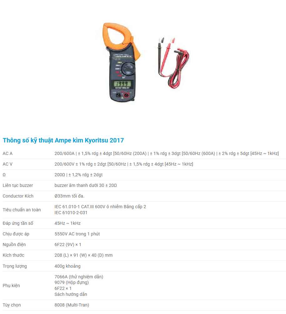 Dải điện áp AC: 2V / 20V / 200V / 600V