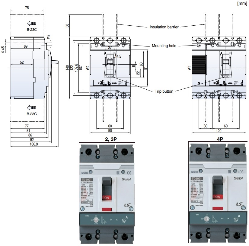 THÔNG SỐ KỸ THUẬT MCCB APTOMAT 3 Pha chỉnh dòng nhiệt 20A LS ELECTRIC TD100N FMU100