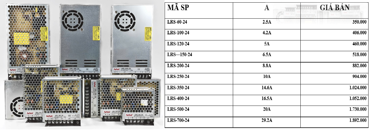 THÔNG SỐ KỸ THUẬT Bộ nguồn chuyển mạch LRS-100-24 4.5A NNC CHINA LRS-100-24 2.5A