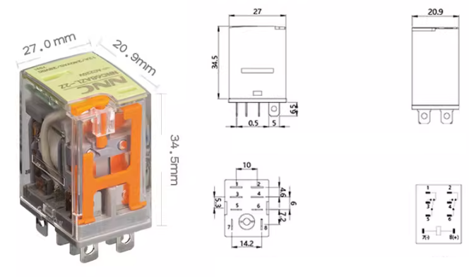 Rơ le này thường được sử dụng trong các ứng dụng tự động hóa công nghiệp, điều khiển thiết bị điện gia dụng, và các hệ thống điện tử khác. Nó có độ tin cậy cao, tuổi thọ dài và khả năng chịu tải lớn.