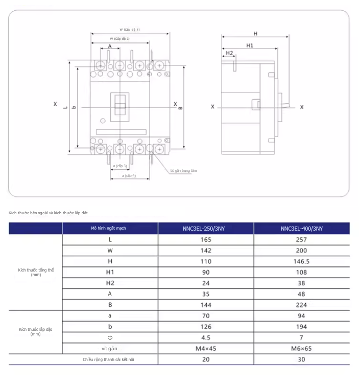 Bộ ngắt mạch tự động 400VAC 50Hz NNC3EL-400/3NY CHINA NNC3EL-400/3NY